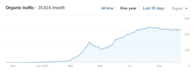 We helped increase their traffic value from around $1,000 in October 2019—when they signed up for HOTH X—to over $2,000 in 2020.