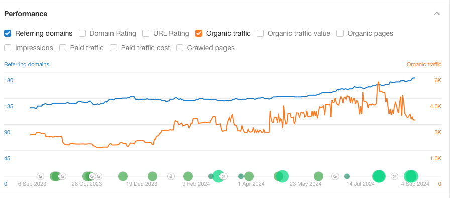 As a preview of the results we achieved, this is what the client’s traffic looks like now (represented by the orange line):