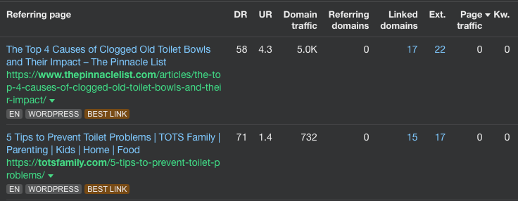 Here’s a preview of a few of the high-DR (domain rating) backlinks we built for the client: