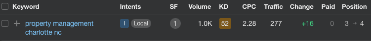 For the keyword ‘rental properties charlotte nc,’ the client ranked in position #13, but we were able to push it up to 5 quite rapidly.