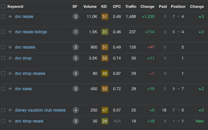 During the call, she expressed her desire to start ranking for important keywords related to Disney Vacation Club timeshare resales.