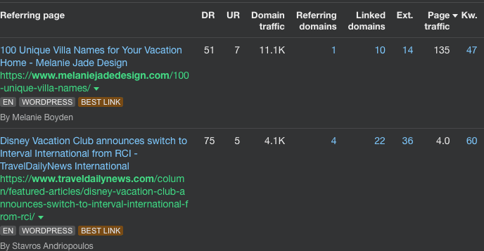 DR is a metric that measures a link’s authority, and it’s on a scale of 1 – 100. DR scores of 50 and above are considered stellar, just like the two links you see here (which are two of many that we built).
