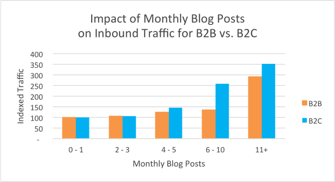 According to HubSpot, the more blog posts (content) you publish each month, the more traffic you’ll drive from organic search: