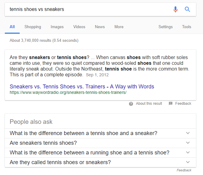 For example, a user who doesn’t yet know the difference between tennis shoes, sneakers, and trainers isn’t going to buy from you.