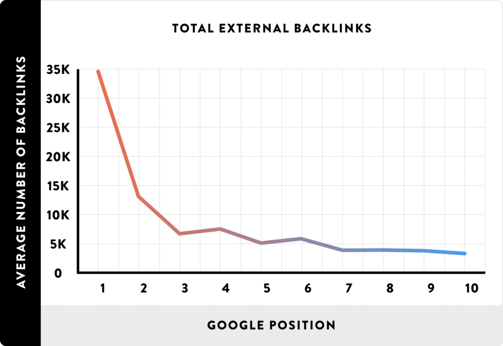 Links are critical to ranking. Backlinko found a direct correlation between total links and organic rankings: