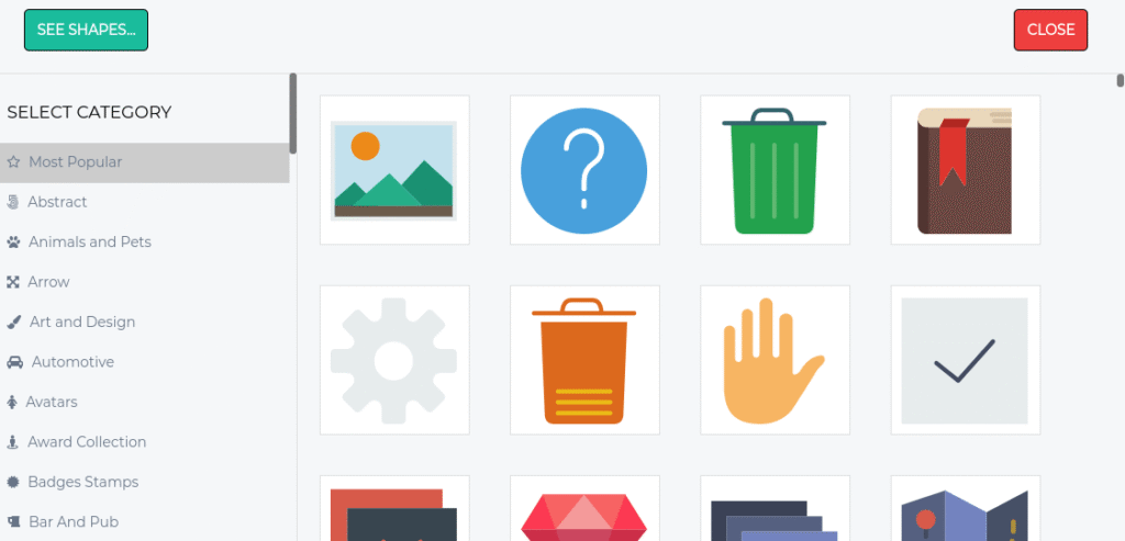 As you can see above you have many different options in creating your unique logo. Besides changing the font and text, you can also browse our free libraries of symbols and shapes.