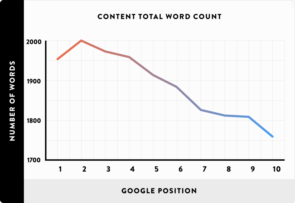 A study from Backlinko shows that longer content (content above 1800 words) tends to get higher rankings than short content.